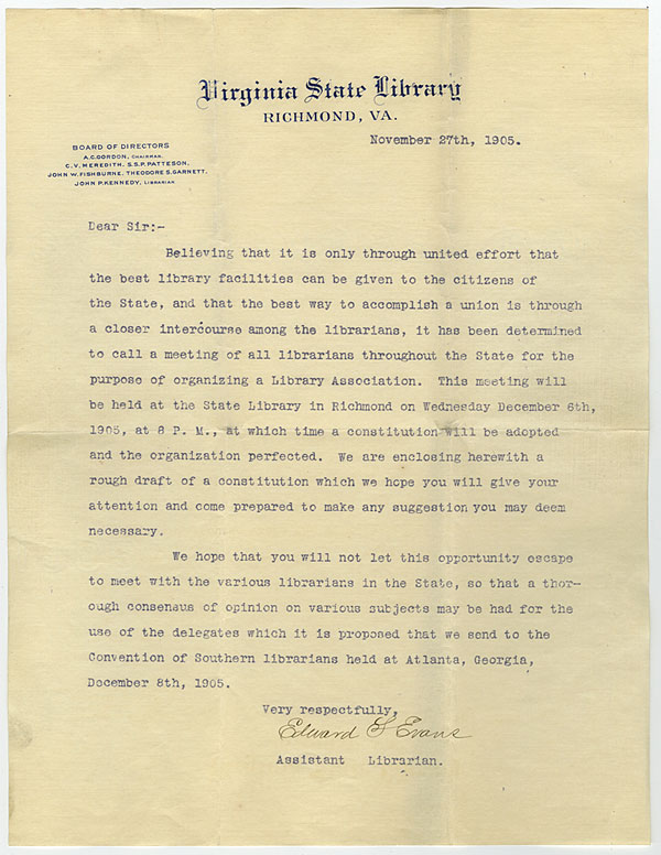 the proposed Virginia Library Association, which began