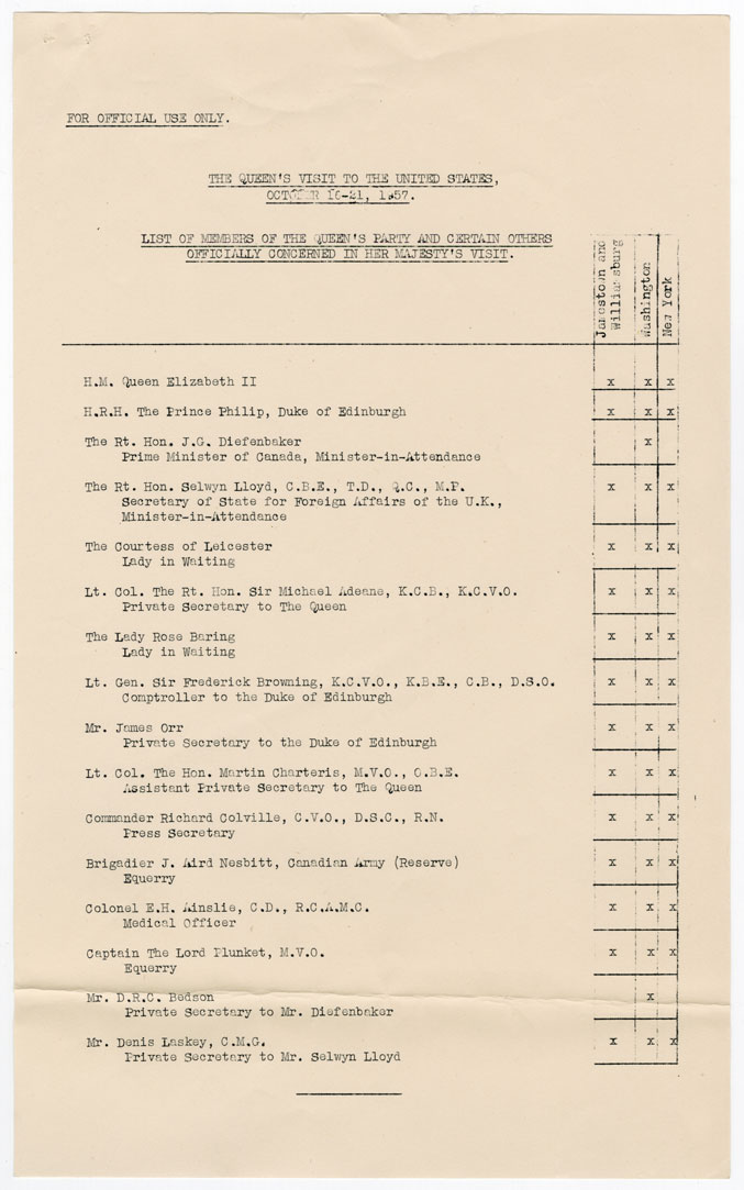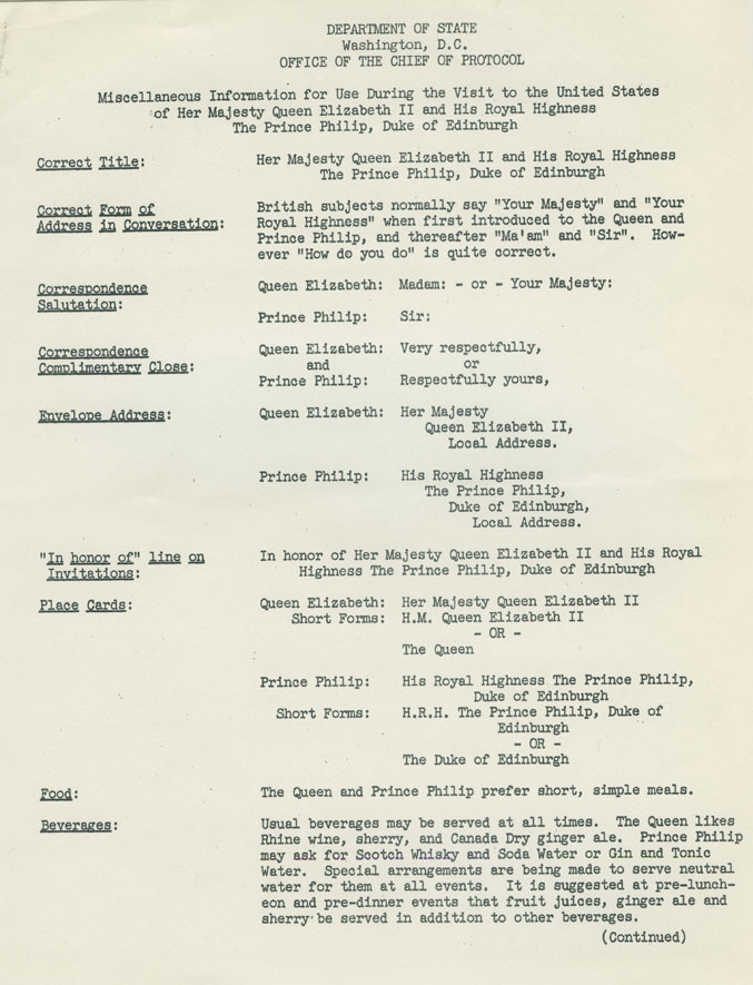 Park Rouse reported to the governor’s executive secretary regarding an inquiry about the color of the dress the queen would wear on her visit: "The queen never gives this information out."