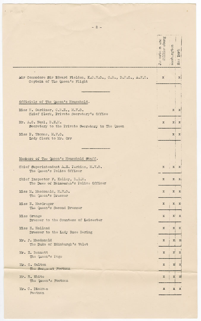 List of "principal persons . . . in the immediate entourage of the royal party and whose names do not appear on the official-party list."