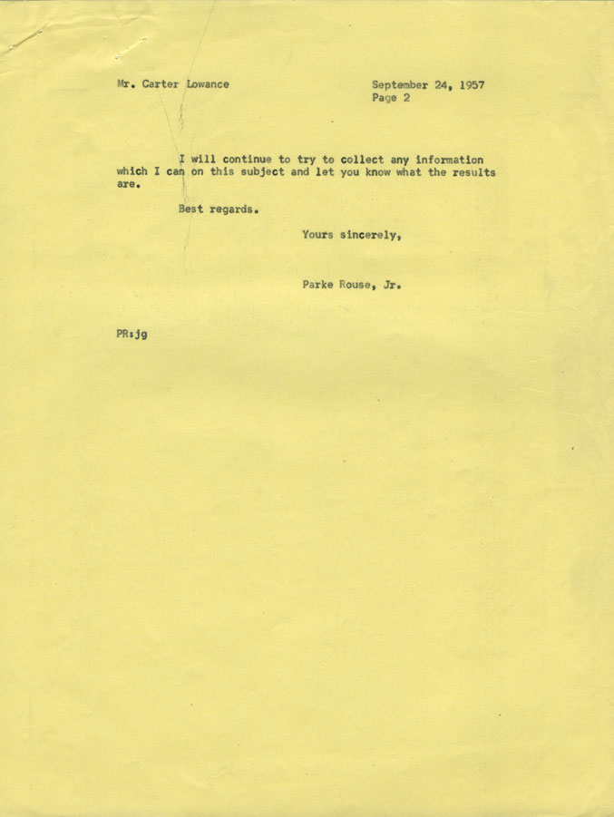 Parke Rouse, Jr., Executive Director, Virginia 350th Anniversary Commission, to Carter Lowance, Executive Secretary, Office of the Governor (page 2)